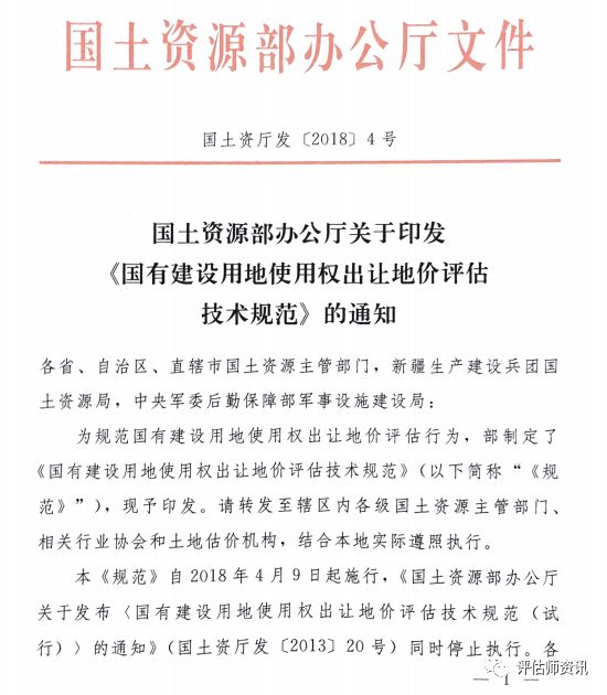 國有建設用地使用權出讓地價評估技術規范 | 國土資廳發(2018)4號