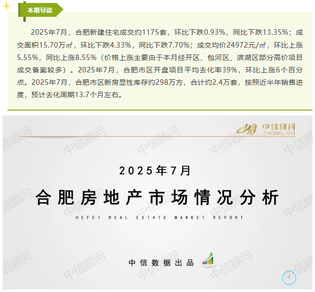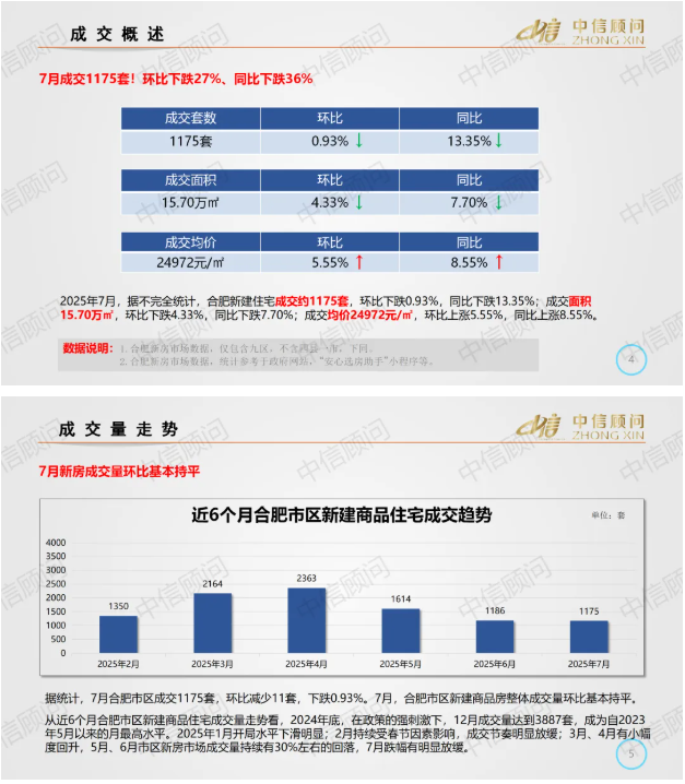 新房市場 | 2025年7月,合肥新房成交量環(huán)比下跌0.93%,同比下跌13.35%