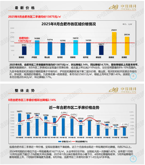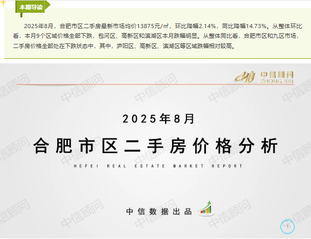 二手房市場 | 2025年8月,合肥住宅均價(jià)1.39萬元/㎡,環(huán)比下降2.14%,同比下降14.73%